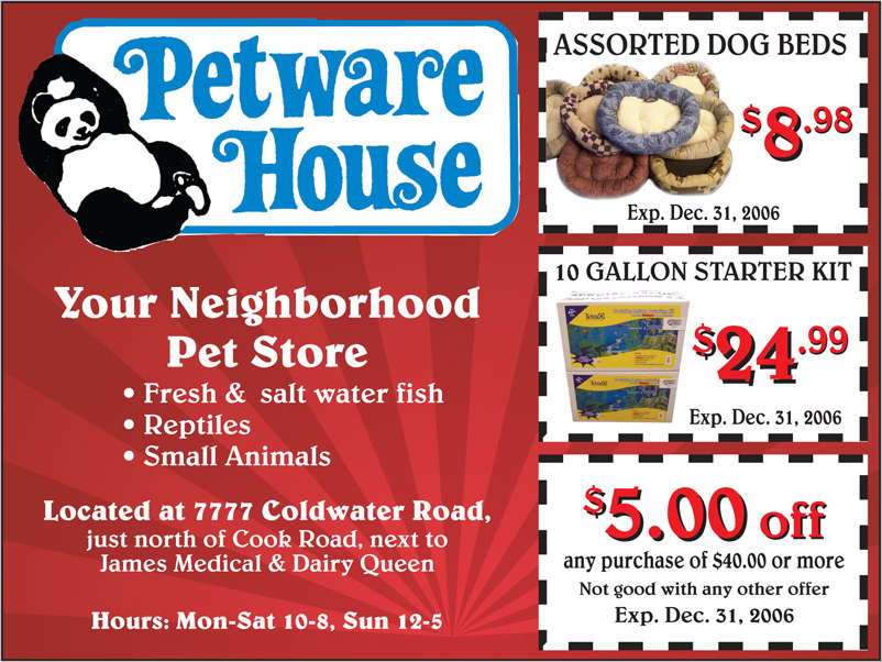 Petware House is pleased to provide all of our archived marketing material, right here for your reference. Our archive includes printed marketing material dating as far back as 2006 which appeared in flyer format, delivered door-to-door, and through print media such as local newspapers and magazines.